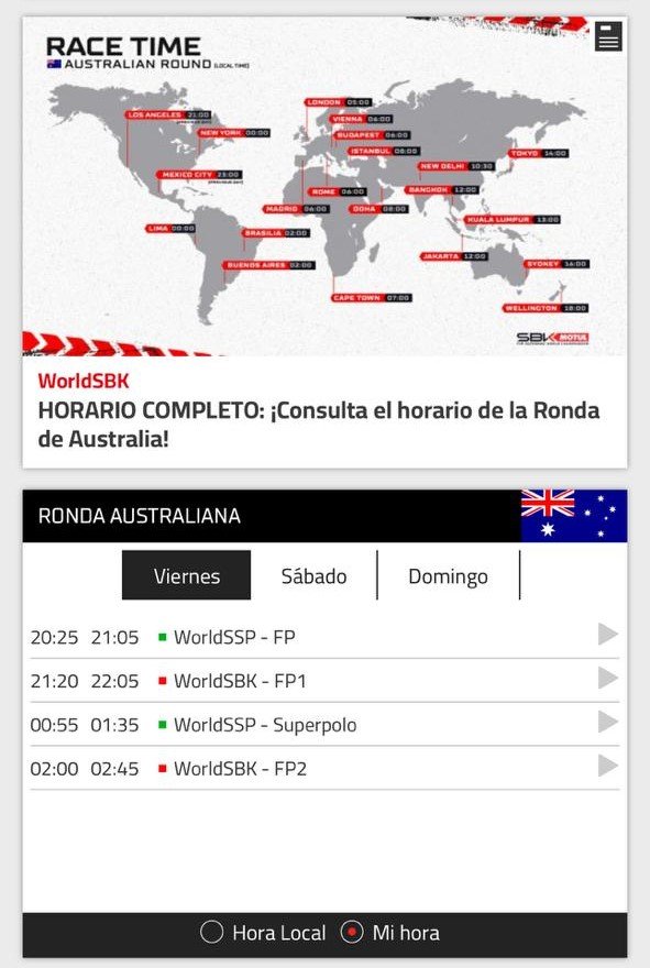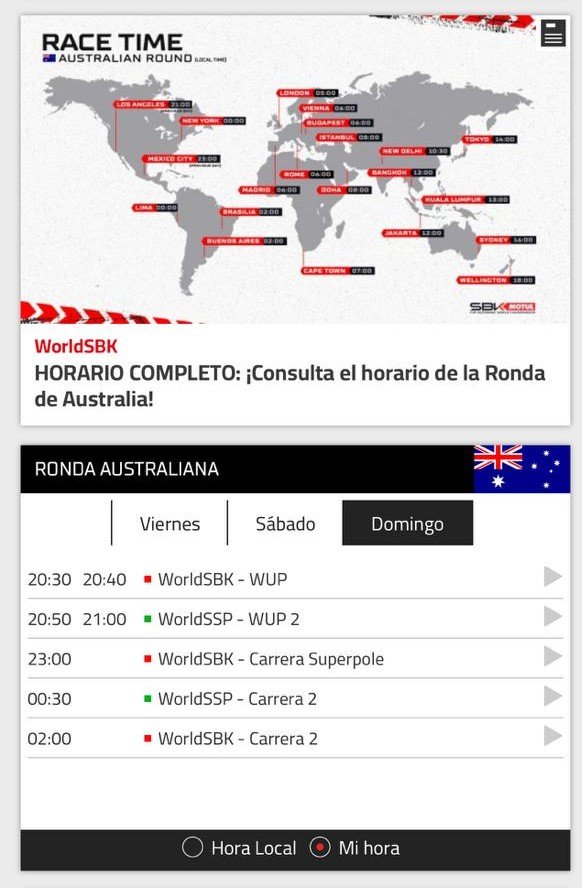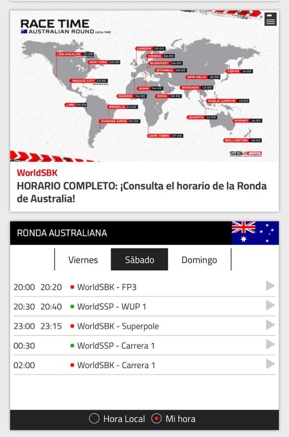 También arranca el Mundial de Supersport que tendrá sus finales a las 0:30 del sábado y domingo.-