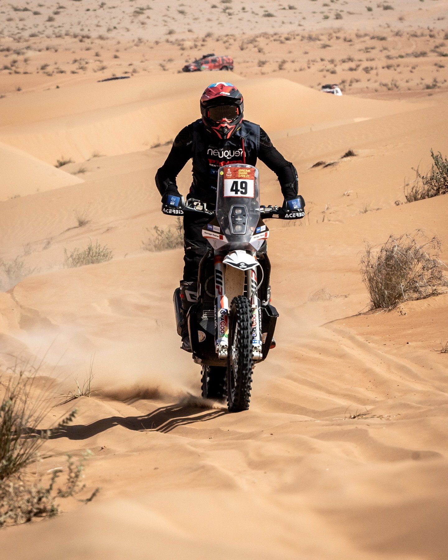 En motos solamente tendremos en las divisiones especiales a tres pilotos Luciano Benavides con KTM Factory Team en la clase RallyGP, Leonardo Cola quiere terminar lo que empezó en 2020 en Rally2 y Santiago Rostan apuesta otra vez a su gran sueño en Rally2