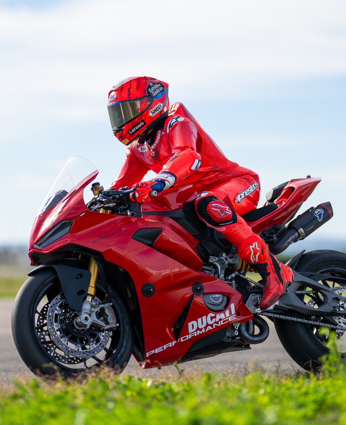 En su vuelta a un circuito de velocidad, Márquez completó dos jornadas (con en las que alternó tandas con las Ducati Panigale V2 y V4. Ambas motos de Ducati en versiones exclusivas de la fábrica italiana y que con ellas rodó en su segunda jornada en el Aspar Circuit.