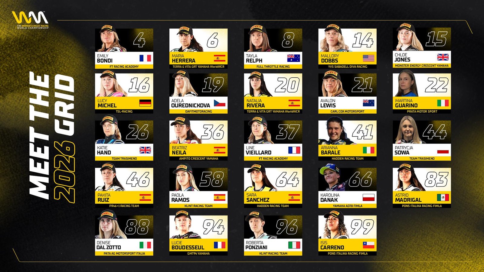La española María Herrera seguirá dentro de la Elite con el objetivo de revalidar su título obtenido éste 2025. Lo hará en equipo nuevo: el Terra & Vita GRT Yamaha WorldWCR. La subcampeona y también española Beatriz Neila también irá a pista por más con mismo equipo que en esta temporada.